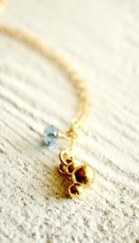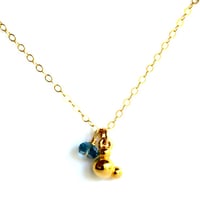 A perfect gift for the Water Baby or scientist in your life. The molecule is solid sterling silver, plated in heavy gold. It suspends from a gold-filled chain with a tiny ocean-hued London Blue topaz accent bead. Spring clasp closure.